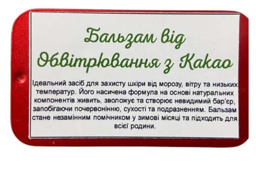 Бальзам від обвітрювання стане прекрасним подарунком для близьких. Він ідеально підійде для зимового догляду, даруючи тепло та турботу вашій шкірі. Подаруйте своїй шкірі комфорт із бальзамом від обвітрювання!